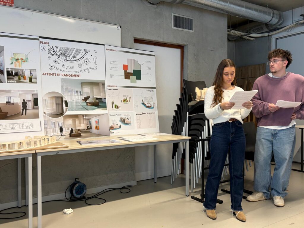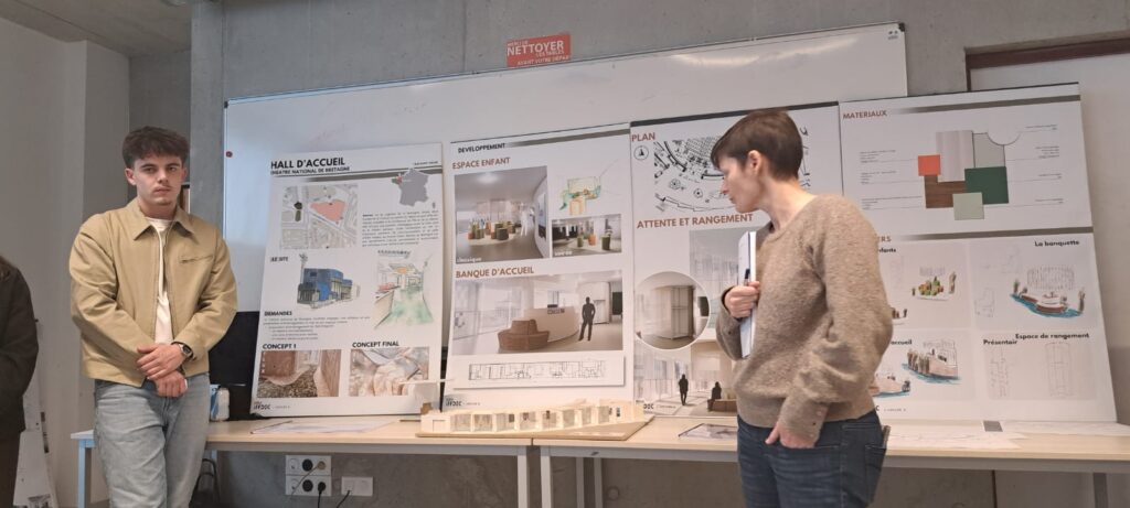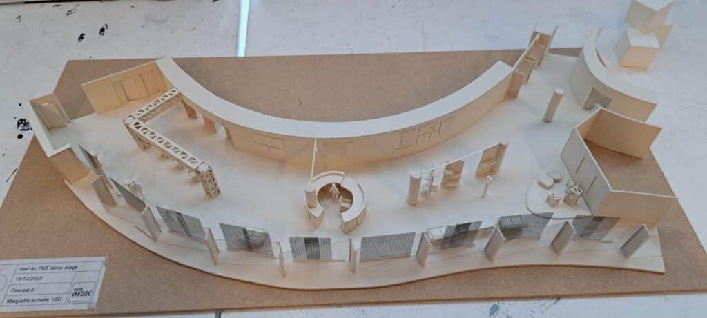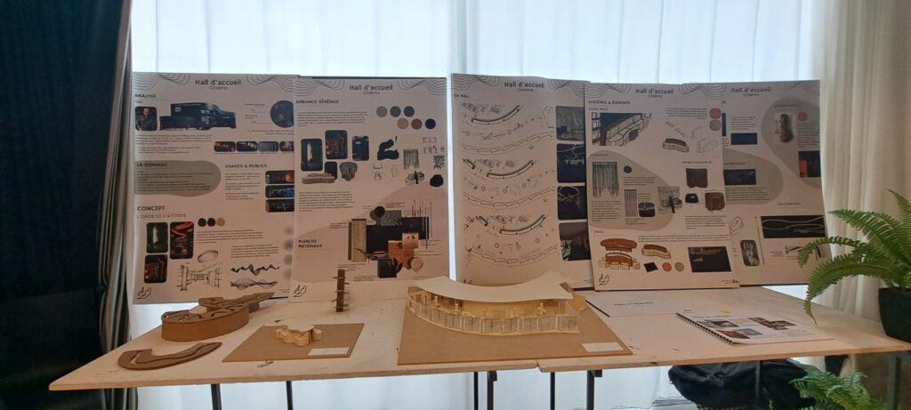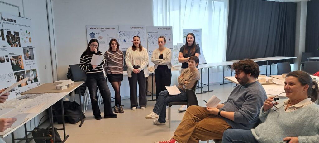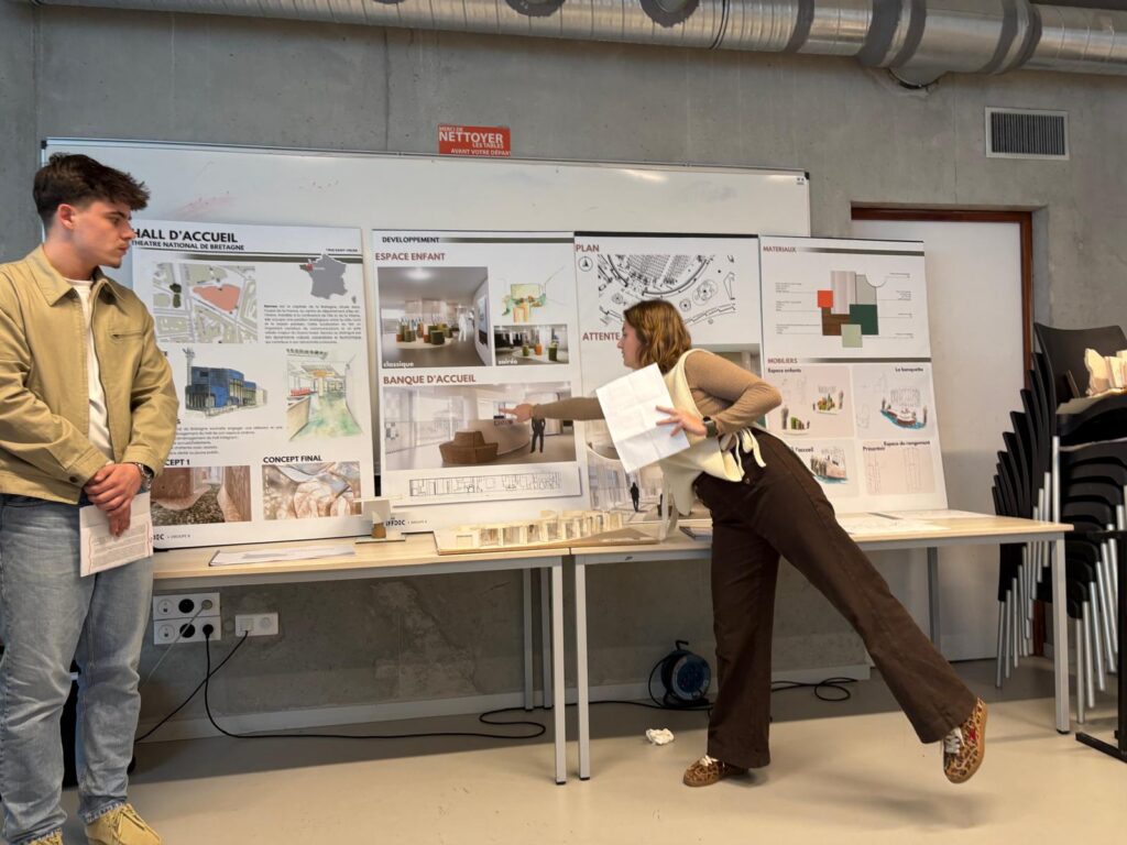 Le Théâtre National de Bretagne (TNB) a confié aux étudiants en 2ᵉ et 3ᵉ année d’architecture d’intérieur de l’Iffdec une mission concrète et professionnalisante : repenser l’aménagement du hall d’accueil de la partie cinéma. Sous la conduite des professeurs Catherine Allain, Jean Spiral et Julie Quaglia, les groupes ont eu 4 jours intensifs de conception, puis un oral en présence de la responsable de la programmation du TNB.