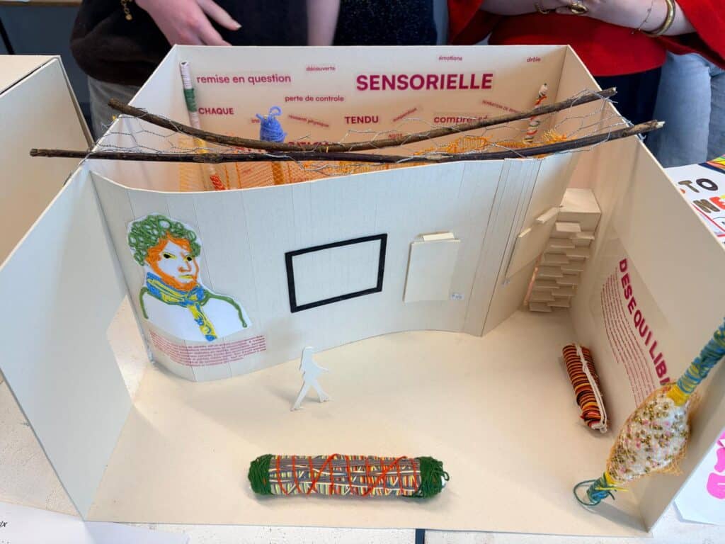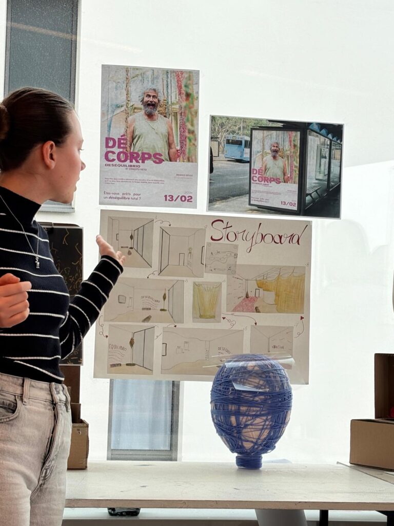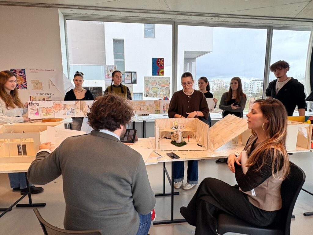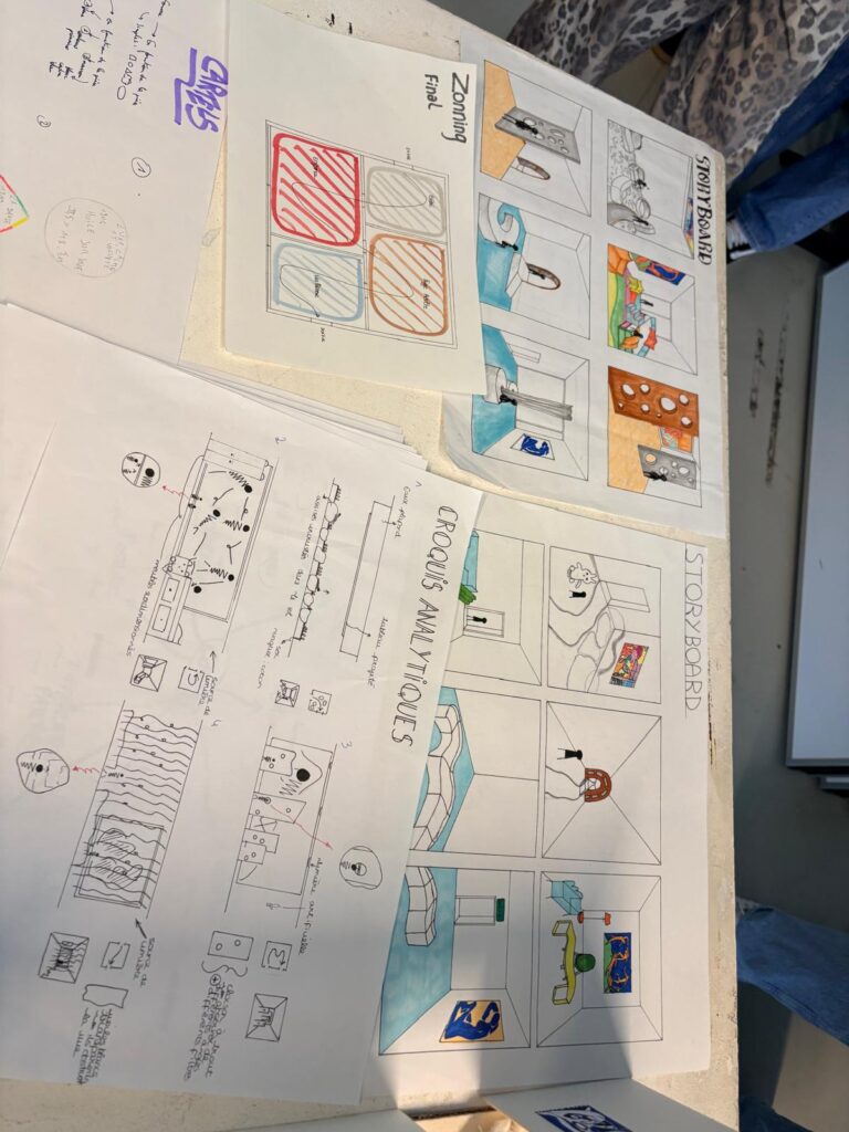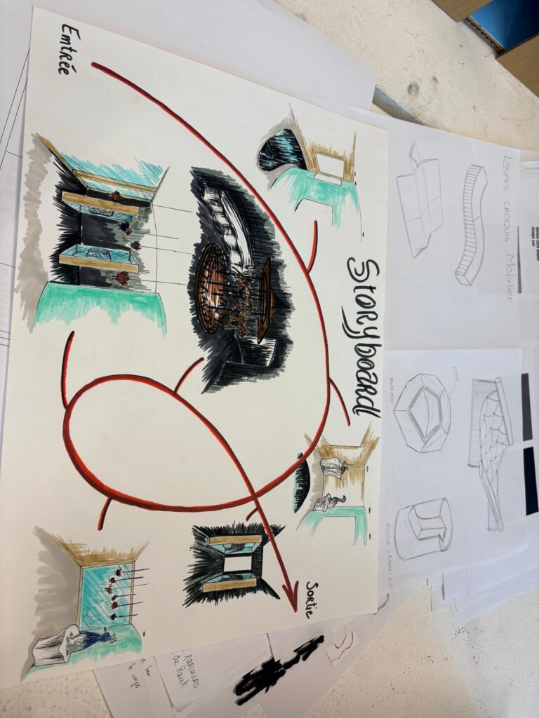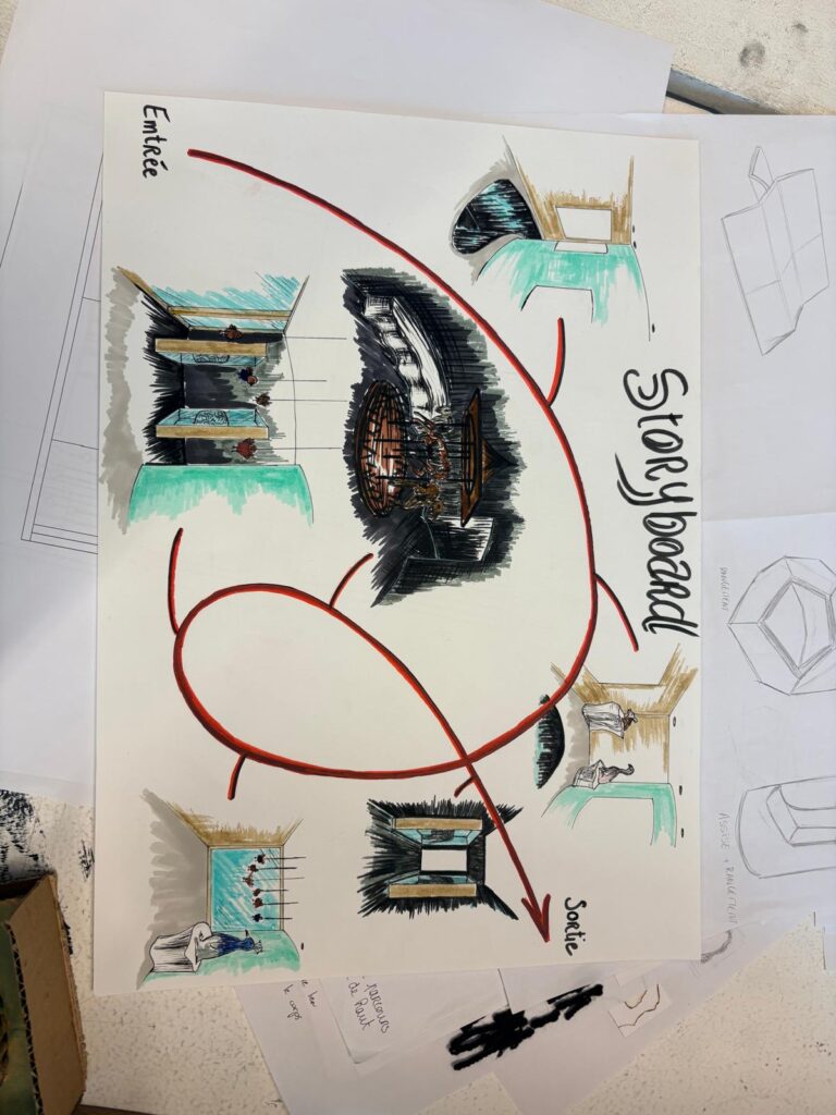 L’enjeu annoncé était double : créer une expérience perceptive forte pour le visiteur tout en maîtrisant les codes rigoureux de la muséographie (parcours, cadrages, gestion de la lumière, distance et immersion). Le workshop a ainsi posé la question essentielle de la rencontre entre design d’espace, design produit et design graphique, dans un geste de création globale et transdisciplinaire.