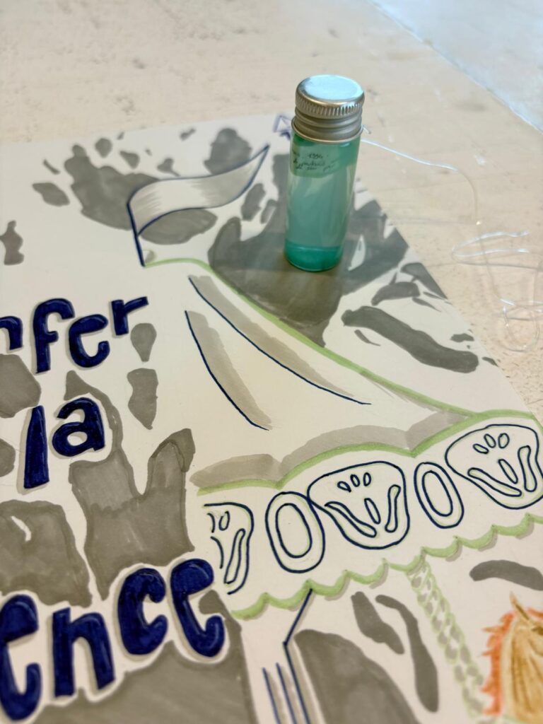 - une maquette-objets du cartel (échelle 1) transformant l’étiquette en élément scénographique ;