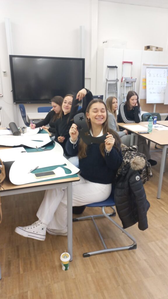 À l’approche du vendredi 13 février, chaque groupe installe sa création sur la baie vitrée qui lui est attribuée. Sous les regards attentifs des professeurs français et allemands, les étudiants collent les films colorés, ajustent la position des sphères et peaufinent l’éclairage pour maximiser l’effet depuis l’intérieur du bâtiment. En cordonnant leurs efforts, les groupes finalisent leurs vitrines en respectant scrupuleusement les consignes de sécurité et d’esthétique. La présentation finale se déroule devant chaque baie vitrée décorée, chaque membre d’équipe expliquant en binôme le concept choisi. Les interventions sont vivantes et illustrées, les étudiants défendant avec assurance leur interprétation de la diversité et expliquant le rôle des éléments graphiques et sphériques dans leur création. Cette mise en situation professionnelle favorisant le développement de compétences transversales (scénographie, communication visuelle, sens du détail) tout autant que d’aptitudes humaines essentielles (travail en équipe interculturelle, adaptation aux contraintes et capacité à argumenter un projet devant un auditoire).