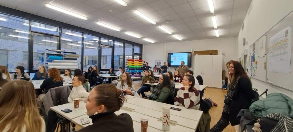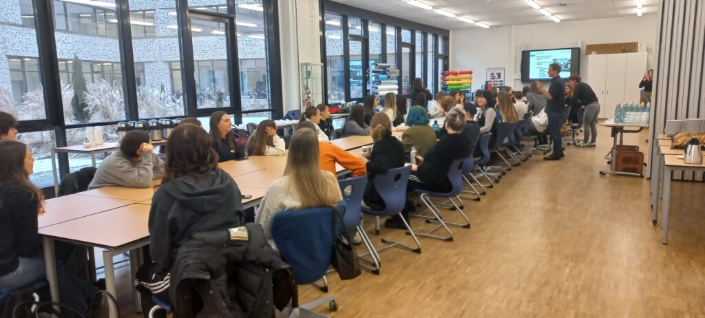 Bordé par le port, le campus de la Berufliche Schule accueille les étudiants bretons avec un programme chargé. Les premières heures sont consacrées aux retrouvailles et à l’initiation : présentation du planning, discussions avec les professeurs allemands et visite rapide de l’école.