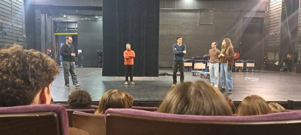 La représentation de la pièce au TNB, programmée fin janvier dans le cadre du partenariat école-théâtre, a été la conclusion naturelle de cet atelier : un terrain d’observation où les étudiants ont pu voir leurs problématiques (visibilité, déplacement, transitions) mises à l’épreuve auprès d’une distribution mixte, d’un metteur en scène engagé et d’équipes techniques exigeantes.