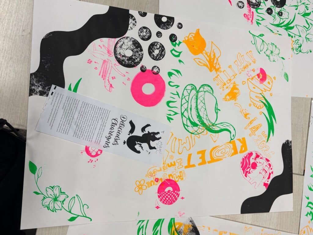 Pour leur workshop intitulé Délicieuses Charognes, les étudiants de l’Iffdec ont expérimenté la technique de la sérigraphie pour produire une série d’affiches grands formats commandées par le 30ᵉ Festival de musique improvisée de Lausanne. Cette année, le festival questionne le désir (thématique vaste et sensuelle) et le parti-pris pédagogique a été clair : transformer la contrainte en moteur créatif. Le résultat n’est pas seulement graphique, il est conceptuel : chaque affiche porte la tension entre accumulation et omission, répétition et surprise, comme une partition visuelle jouée au fil de l’atelier.