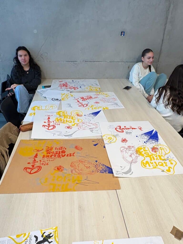Pour leur workshop intitulé Délicieuses Charognes, les étudiants de l’Iffdec ont expérimenté la technique de la sérigraphie pour produire une série d’affiches grands formats commandées par le 30ᵉ Festival de musique improvisée de Lausanne. Cette année, le festival questionne le désir (thématique vaste et sensuelle) et le parti-pris pédagogique a été clair : transformer la contrainte en moteur créatif. Le résultat n’est pas seulement graphique, il est conceptuel : chaque affiche porte la tension entre accumulation et omission, répétition et surprise, comme une partition visuelle jouée au fil de l’atelier.