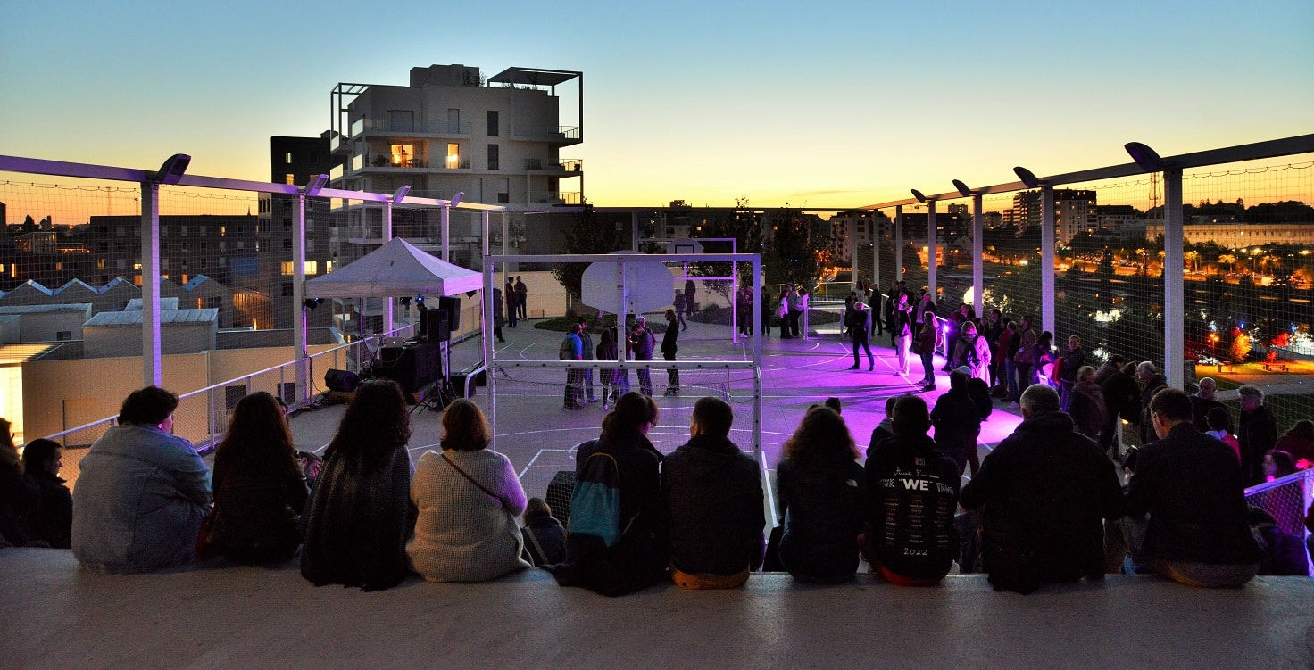 Près de 150 spectateurs ont participé à cet événement le samedi 8 octobre en soirée. A l’issue du parcours, le musicien Fabrizio Rat du collectif Ars Nomadis a proposé durant 30 minutes sur le rooftop d’Artémisia une création sonore à partir de bruits de chantier.